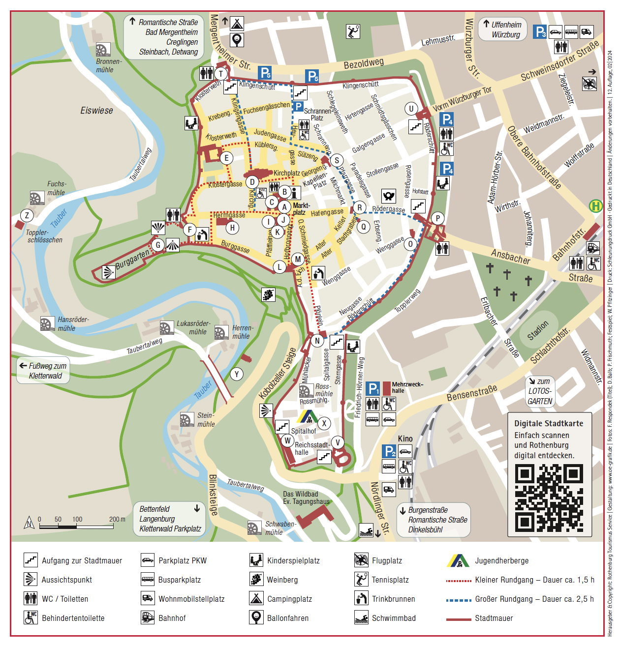 Es gibt sogar eine mit Daten gefüllte Karte unter der Verwendung von OpenStreetMap für Rothenburg und eine eigene Subdomain: https://map.rothenburg.de/ . Hier können die Trinkwasser-Möglichkeiten auch noch eventuell eingebunden werden, der Austausch mit der Stadt sieht vielversprechend aus.